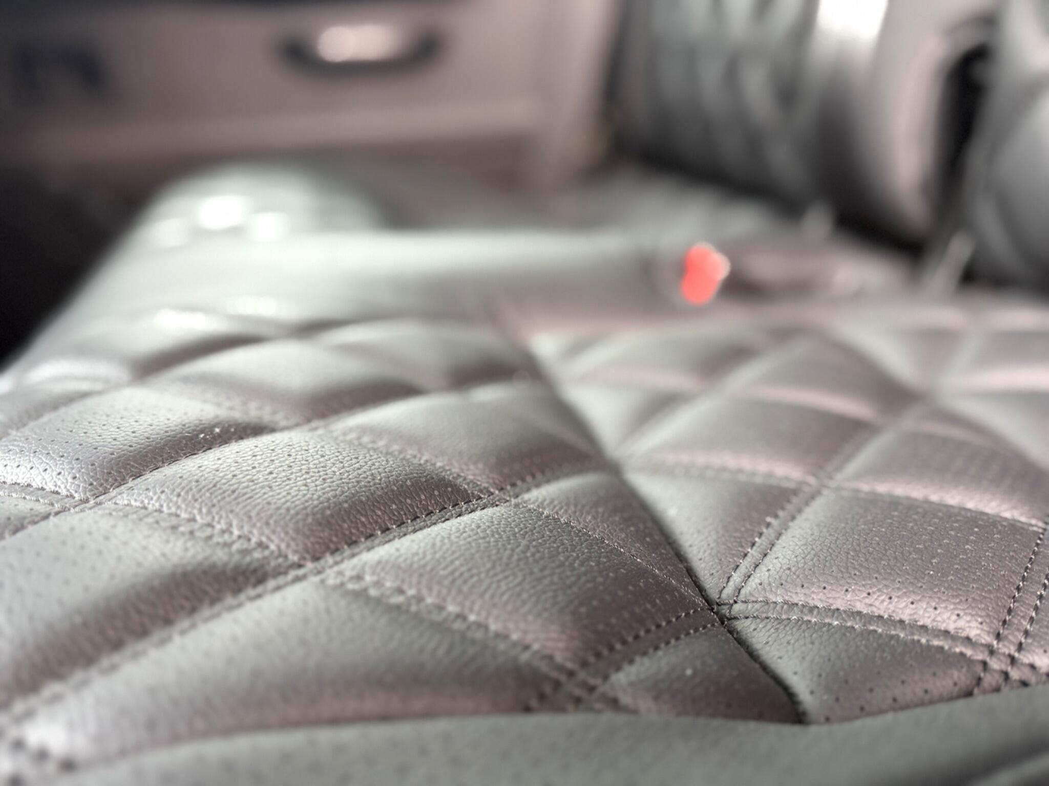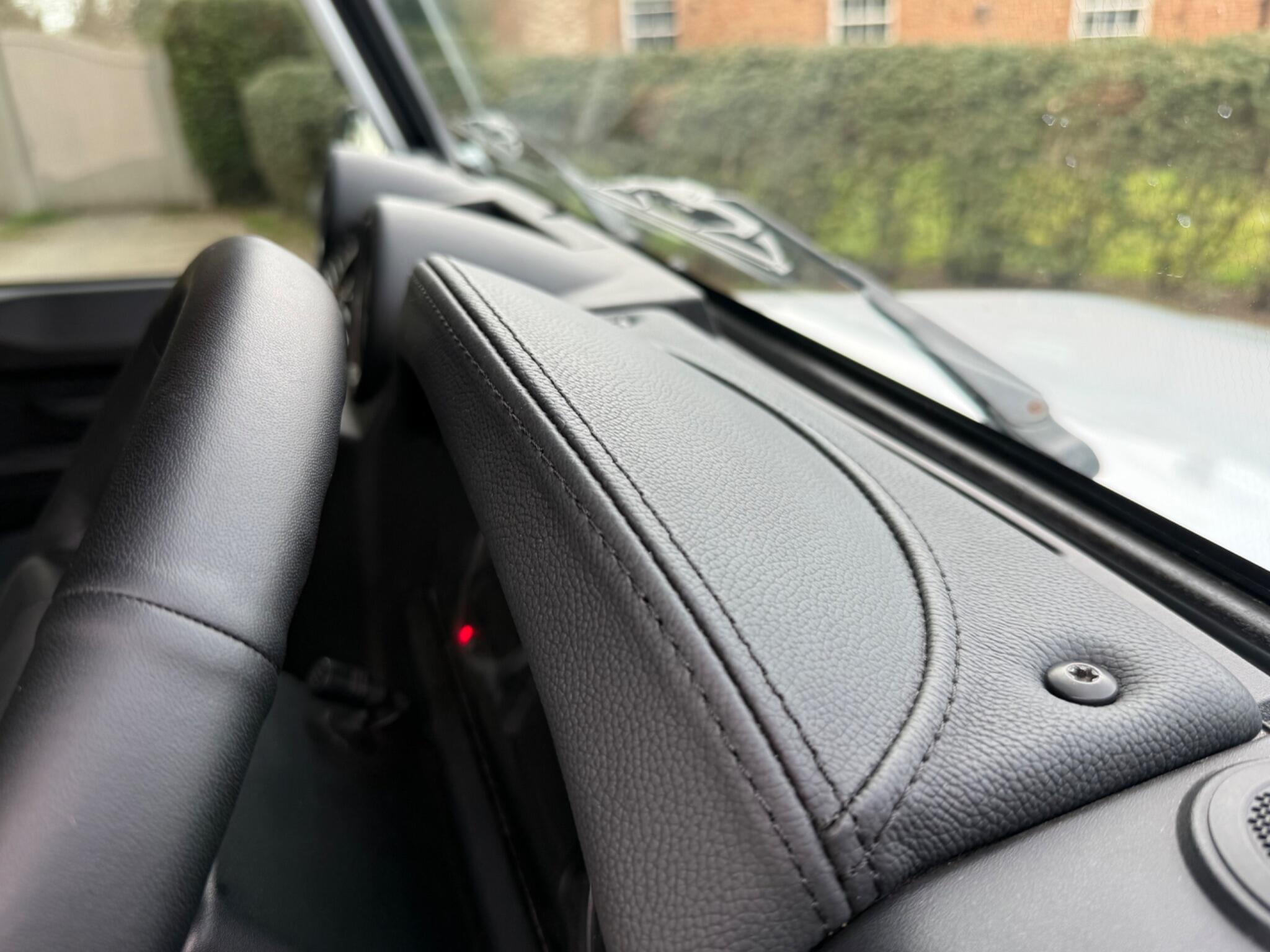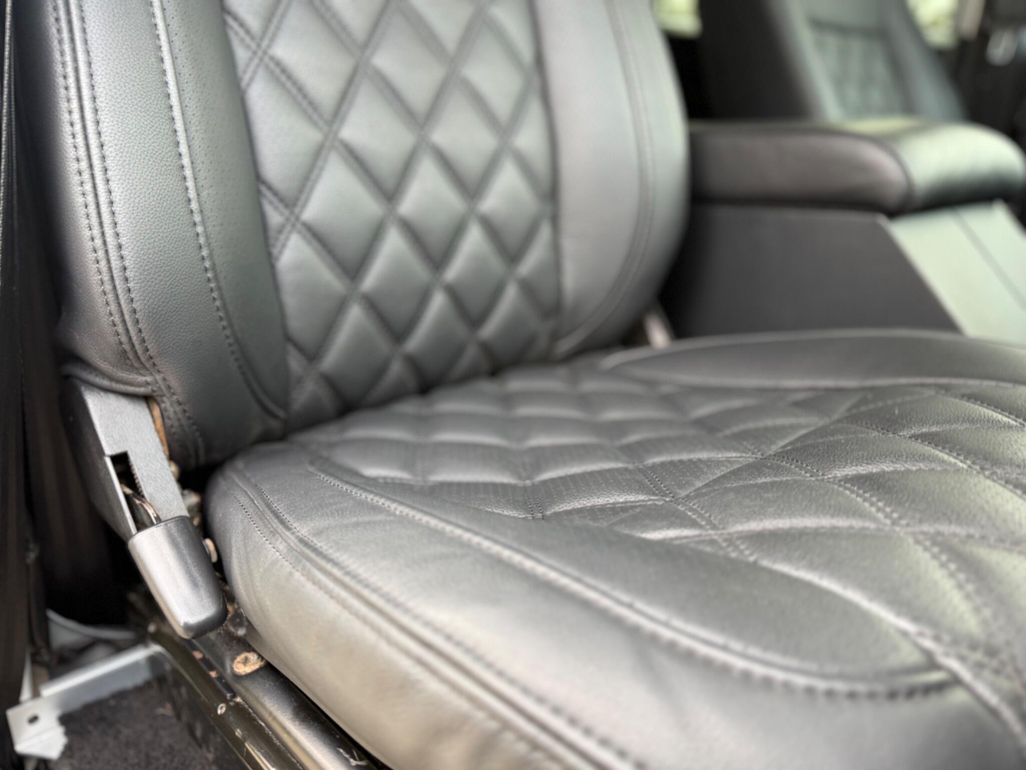 A cohesive black leather interior finished to a high standard including black leather seats with black stitching, matching rear seats, part leather dashboard, gloss black dash fascia, leather sports steering wheel, leather gear levers, raised leather cubby lid, premium carpet kit, level 2 acoustic soundproofing, suede headlining, suede pillar and rear trims, stainless door entry guards and radio CD with Bluetooth.