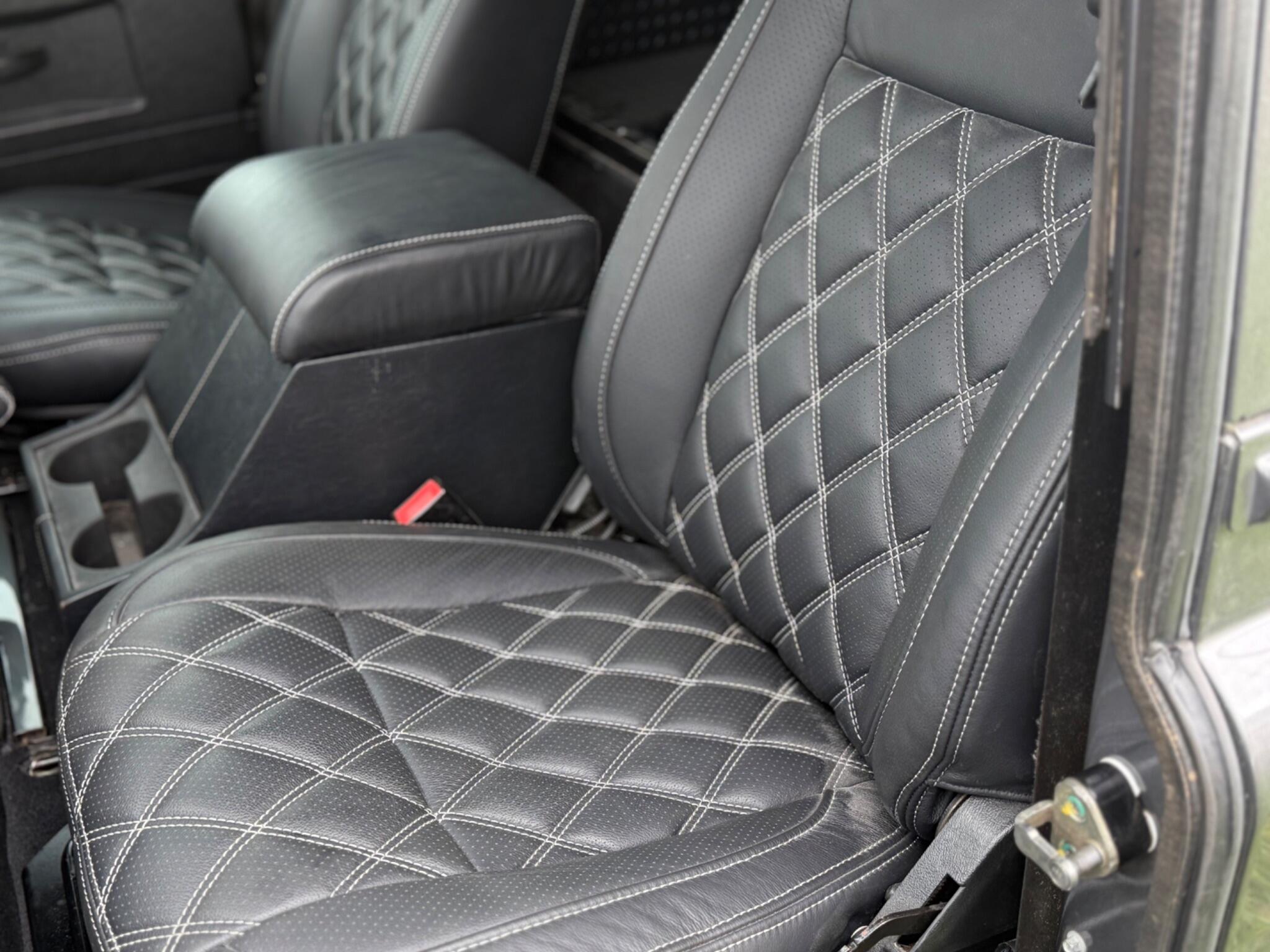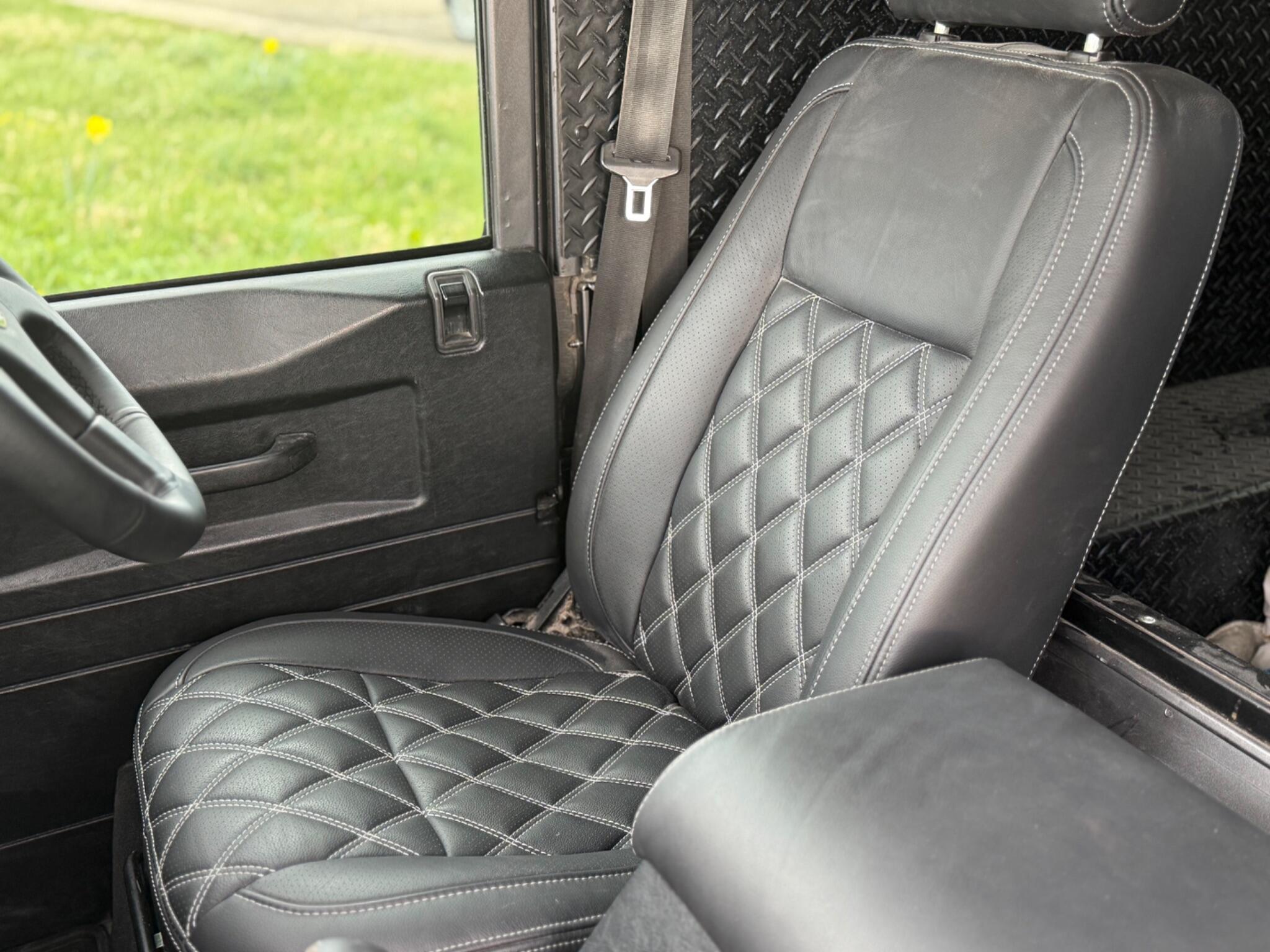 Retrimmed with black Nappa leather seats with silver contrast stitching, complemented by a part leather dashboard and raised cubby box lid.