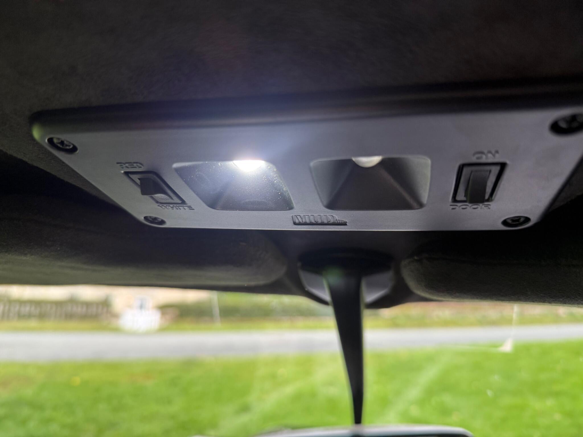 • Suede headlining, including LED interior lights